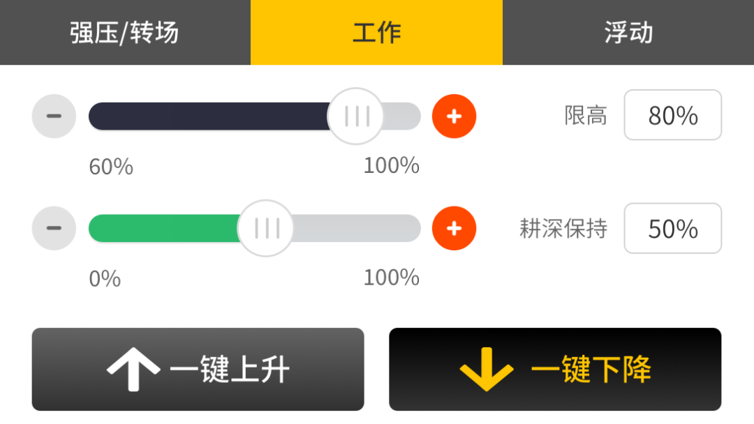 通过滑块设置耕深比例和限高值,精准调整机具位置。