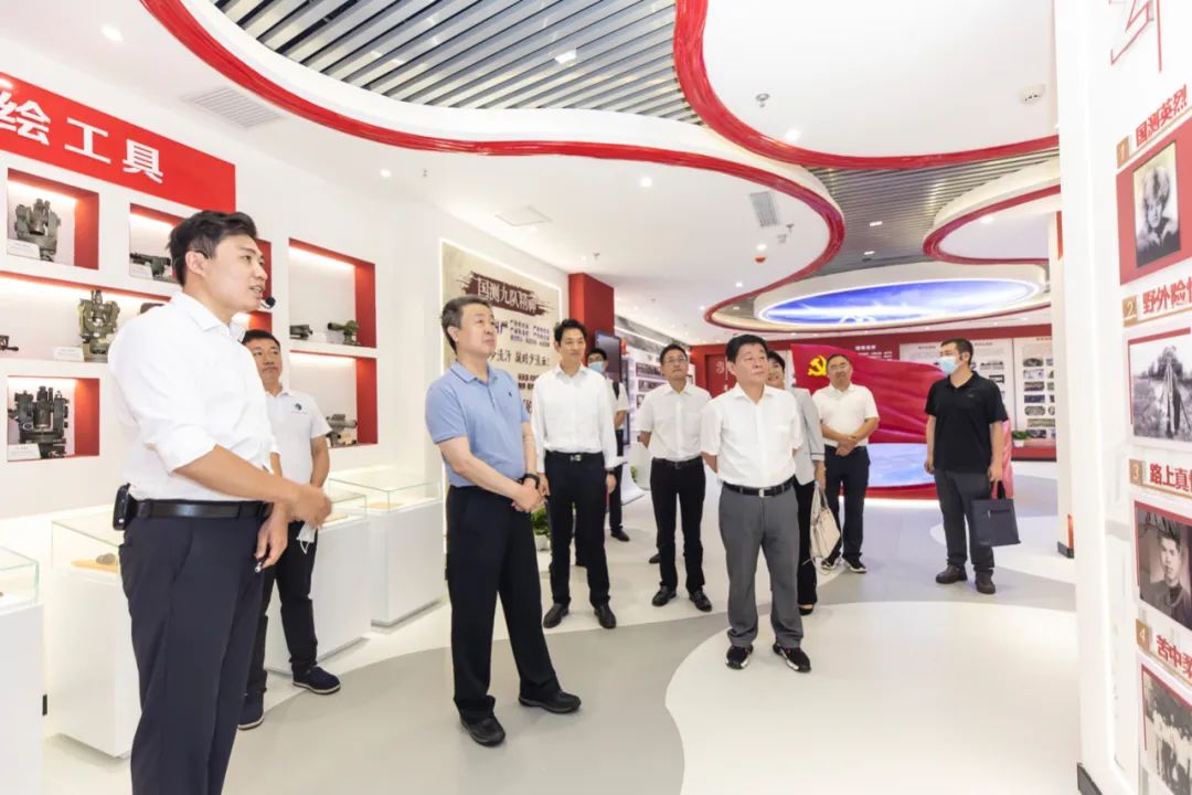 在国测九队展厅,与会人员追寻着60年前国测九队老队员们的奋斗足迹,深刻感受在那段筚路蓝缕的岁月中,他们作为新中国第一批测绘人为新中国经济建设、国防建设忠诚奉献的寸土寸心精神。
