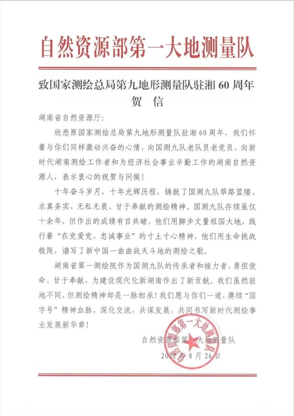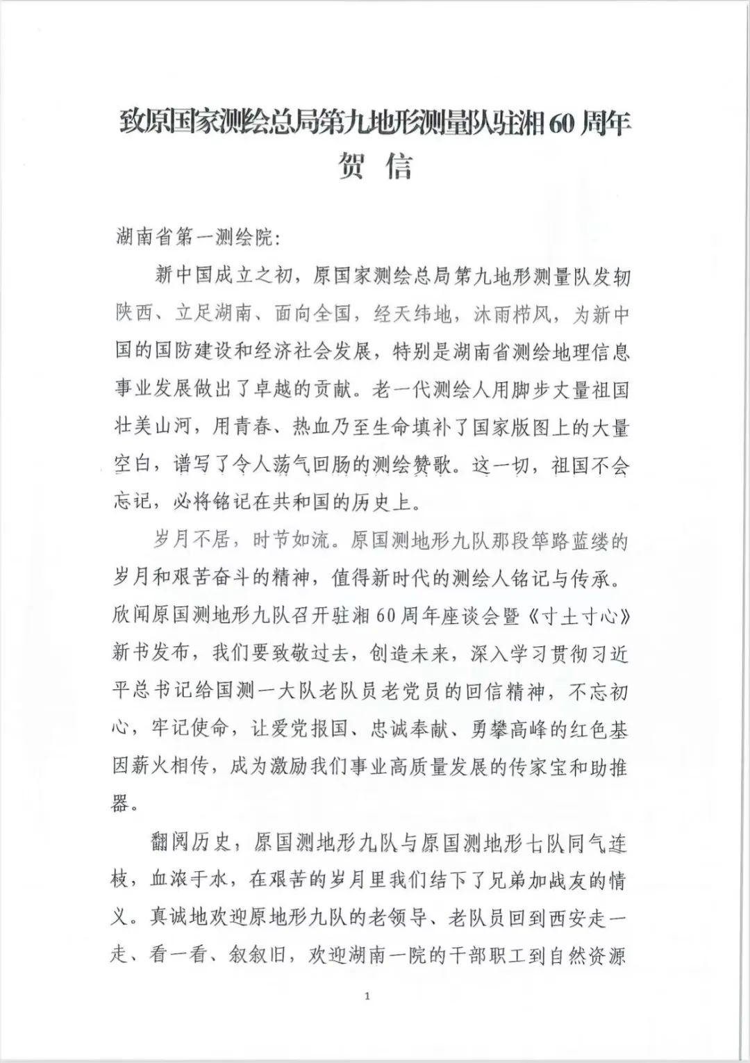 第二阶段,邓建华致辞、谢文宣读了自然资源部第一大地测量队、第三大地测量队,第一地形测量队、第六地形测量队、第三地图信息制图院的为本次活动发来的贺信,向原国测九队老队员老党员不畏艰苦、顽强拼搏,用脚步丈量祖国大地,填补川东大巴山地区无基本地形图的空白表示崇高敬意,并向新时代湖南测绘工作者和为经济社会事业辛勤工作的湖南自然资源人表示衷心的祝贺与问候。