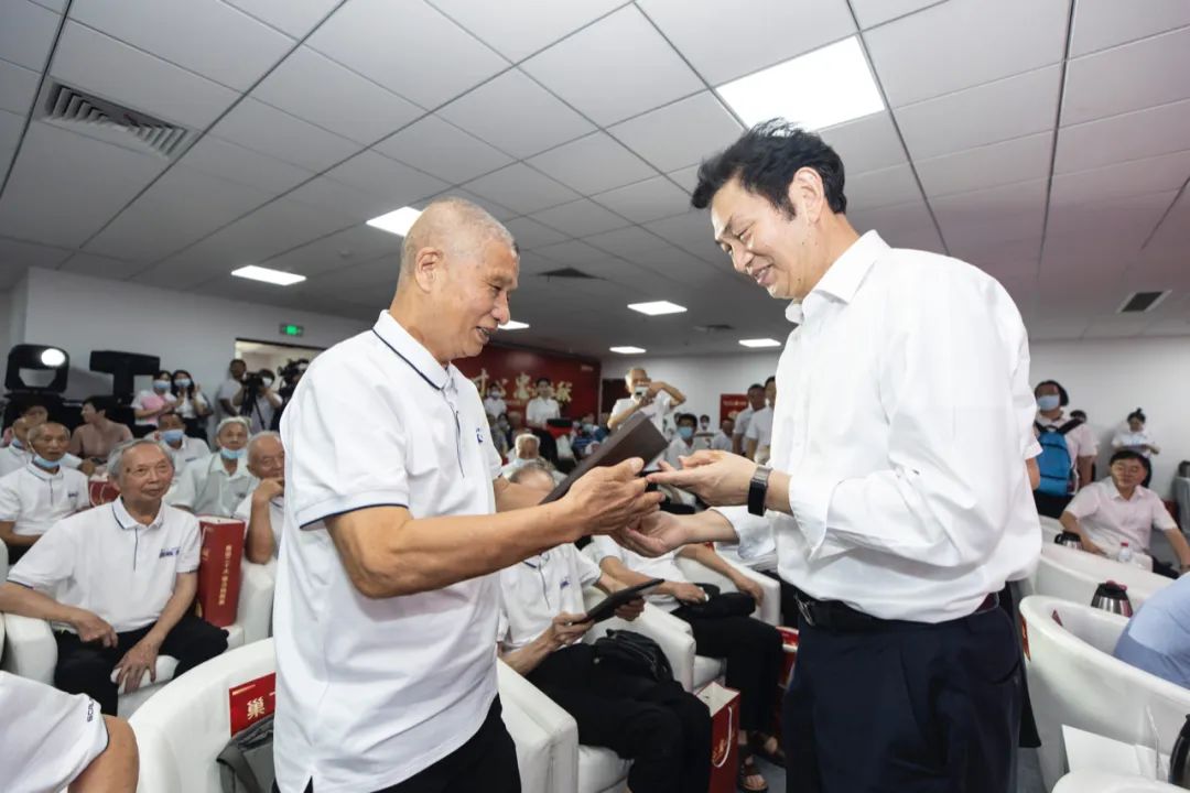 随后,原国测九队老队员三名代表陈汉元、刘传英、黄愈贵上台分享国测九队故事,传颂国测九队精神。活动现场,陈仲伯为参加活动的老队员赠送“寸土寸心诚奉献”纪念牌。