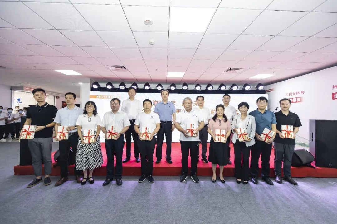 在国测九队《寸土寸心》纪实书发布会上,国测九队老队员、厅机关处室、厅直属单位、测绘公司单位等代表上台领书。