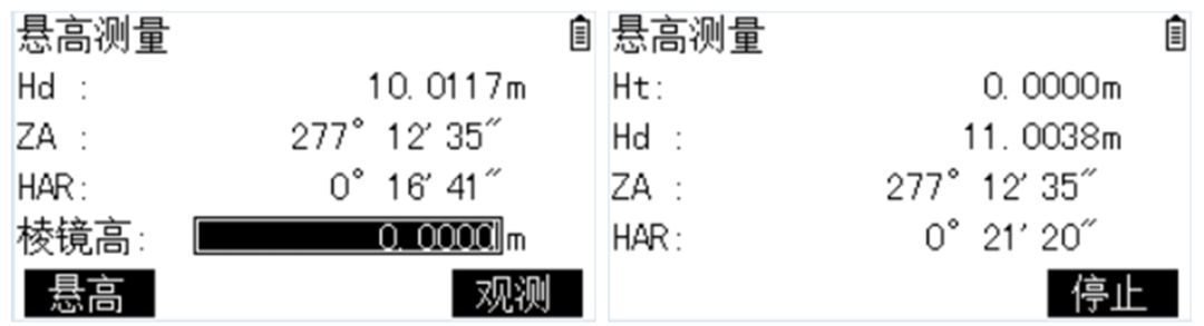 按F1【悬高】,开始悬高测量,按F4【停止】,完成悬高测量