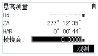 将棱镜架设在目标点的正上方或正下方,照准棱镜,输入棱镜高,按F4【观测】。
