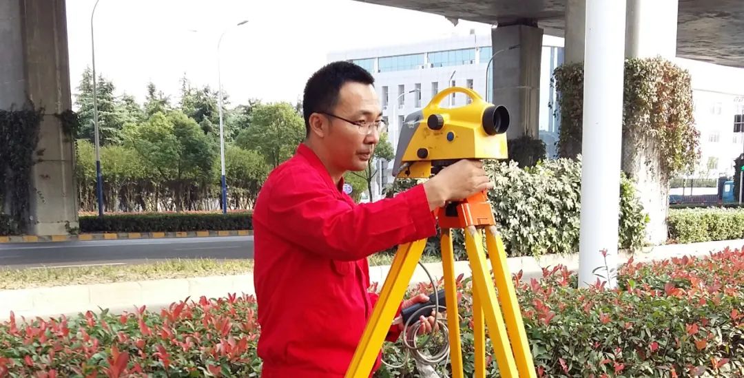 任秀波在江苏进行沉降监测水准测量。