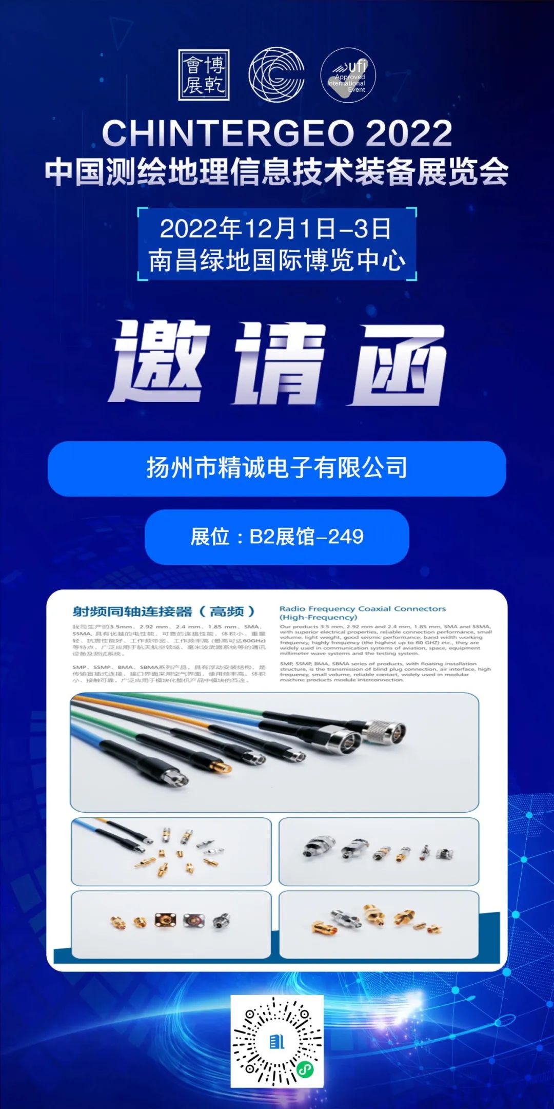 扬州市精诚电子有限公司成立于1999年,注册资金1800万元,是专业研发、生产和销售射频同轴连接器、同轴电缆组件及无源微波器件的高新技术企业。公司地处风景秀丽的千年历史文化名城——江苏省扬州市,隶属扬州经济技术开发区(国家级),毗邻长江,交运便捷。扬州市精诚电子有限公司技术力量雄厚,生产设备先进,制造工艺精湛,质量检控严谨,管理体系健全,在行业内率先创建了集工程技术研究、设计开发、试验检测、科技成果转化和成套技术服务为一体的专业同轴连接器工程技术研究中心,相继引进了韩国Hanwha、日本Star、瑞士ESCOSA等多品牌高精密数控机床、同时逐年在增添高频网络分析仪,目前拥有生产及检测设备共计200台。并在行业内率先通过了ISO9001、ISO14001、GJB9001A三合一标准体系认证,三级保密认证和RoHS2.0环保认证。在严格贯彻相关认证标准规范实施科学化管理的基础上,等效参照GJB、SJ、GB等国家、军工、行业标准以及MIL-C、IEC、DIN等国际先进标准组织设计、制造与检测,高起点、高标准、高品位,精心打造产品品质,为客户创造价值,现有产品近三十多个系列3000多个规格,广泛应用于航空航天、军工装备、无人机、通讯通信、地理测绘、公共轨道交通、网络系统、工业电子、工控与仪器仪表、交通航运、医疗器材及汽车工业等军民用领域,并出口北美、欧洲、东南亚等多个国家和地区,产品品质和服务水平深受国内外客户信赖与赞誉,在多个领域享有较高的声誉。扬州市精诚电子有限公司致力于为客户提供电子信息互连方案和互连工业产品,旗下“金诚诺”品牌主要产品有:⊙符合GJB、SJ、GB、GY、MIL-STD-348、MIL-STD-348A、MIL-C-39012、IEC169、DIN等标准的2.92mm、3.5mm、2.4mm、1.8mm、SMA、SSMA、SMP、SSMP、N、TNC、BMA、SBMA、SMB、SMC、SSMB、SSMC、BNC、MCX、MMCX、L6、L8、L9、L12、L16、L29、SL16、Q9、F、FL10等射频同轴连接器、转接器、电缆组件、同轴终端负载、避雷器、大规格馈管接头;⊙匹配客户需求进行定制设计与制造,提供差异化产品、专用产品及特种产品等。扬州市精诚电子有限公司恪守“精益求精出产品、诚心诚意为顾客、满足客户需求、持续不断改进”质量方针,秉承“质量第一、用户至上、以诚为本、共同发展”的经营宗旨,坚持以卓越的品质、快捷的交货、合理的价格和优质的售后跟踪服务为所有客户提供互连产品和服务。