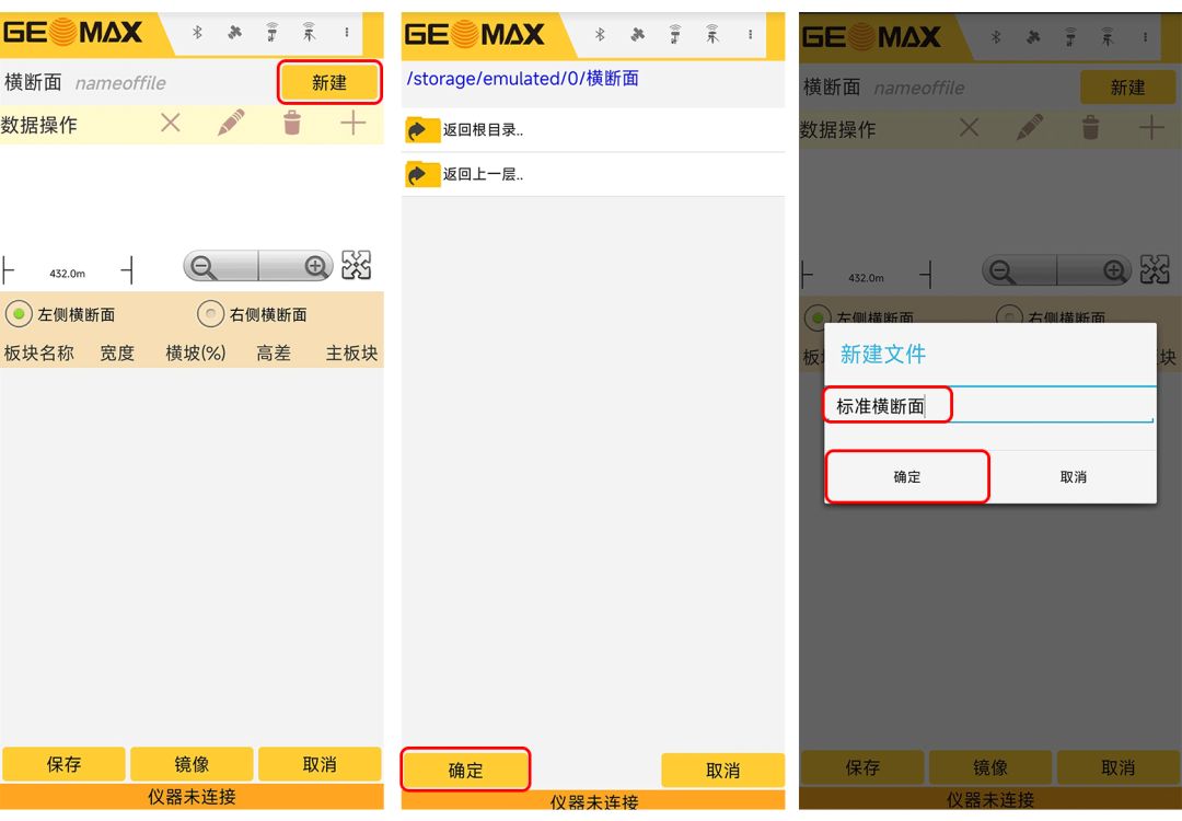 点击【新建】,选择文件路径,点击【确定】,输入横断面数据文件名,点击【确定】,完成横断面数据文件的建立。