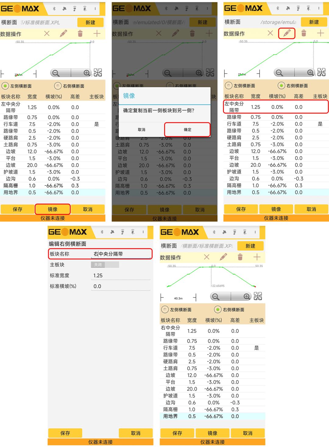 选择“右侧横断面”,可以按左侧断面数据的方法输入,也可以点击“镜像”,将左侧数据对称复制到右侧,修改右侧数据,就可以完成右侧断面数据的输入。