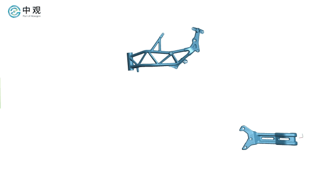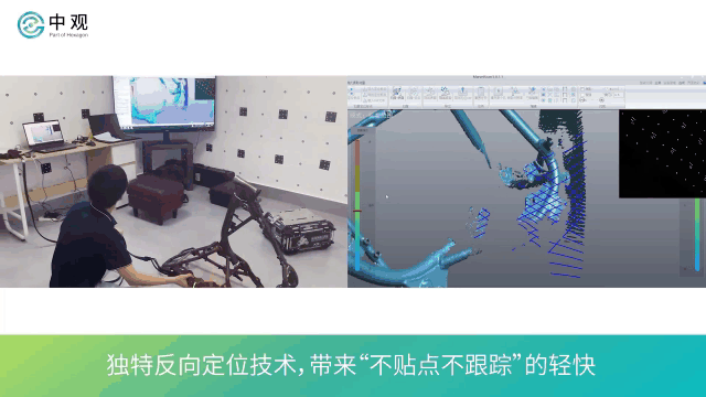 中观为客户提供了“另辟蹊径”的智能反向定位测量解决方案,相较于一般的手持式激光3D扫描测量,该方案能以一种更加高效便捷的方式,精准获取各类车架的完整数据,可以快速解决复杂车架的测量难题。