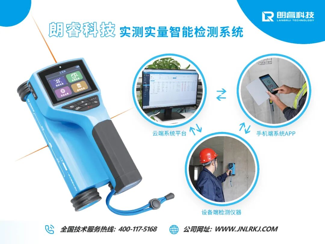 可见,在其他条件不变的情况下,钢筋保护层厚度c偏大会造成有效高度h不足,从而降低受弯承载力Mu、裂缝控制性能及刚度。最常见的是负弯矩钢筋移位引起的板边裂缝。如果这种现象发生在悬臂构件上,承载力的降低还可能引发倒塌事故,造成人员伤亡。对结构实体的钢筋保护层厚度检测具有保证结构安全的重要意义。然而,传统的隐蔽工程验收作为钢筋检查的最后关口并不严密,而在实体检验中,增加对钢筋保护层厚度的检测就克服了这个缺陷。这对于强化验收,加强施工质量控制,保证结构安全起到了积极的作用。针对传统建筑工程质量检测中的弊端问题,济南朗睿检测技术有限公司通过软硬件联合开发,自研推出实测实量智能检测系统一体化解决方案,协助用户实现对建筑工地的检测、数据分析、运营管理等各业务模块的全流程、智能化管理。其中就包含钢筋保护层厚度的检测功能模块,保证保护层厚度检测数据实时同步、检测结果实时上传、实时计算检测合格率等多项智能化功能,助力提高工程施工质量。