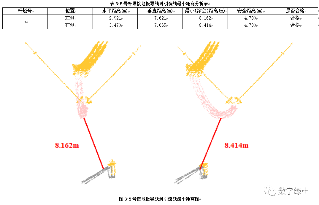 针对直流线路耐张塔,软件自动计算接地极与引流线的最小净空距离,并输出到台账。