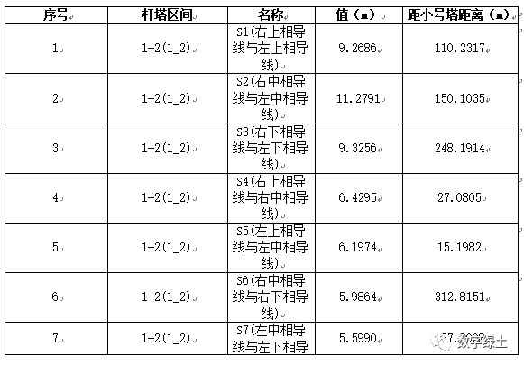 软件支持自动计算相间的最小距离值。对于双回线路,还可计算左右两回导线的水平间距离,输出到台账。