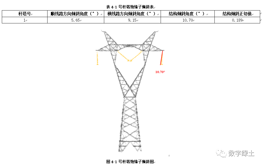 利用LiPowerline软件可进行杆塔结构倾斜角度的自动测量,输出到报告内。