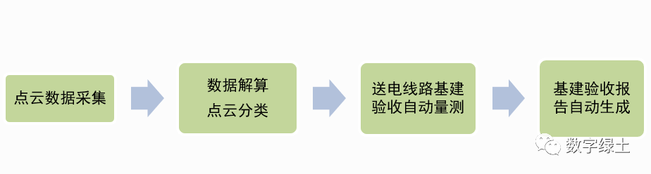 其主要技术路线如下图所示,数据采集和解算可选择数字绿土提供的机载LiDAR系统及其配套软件完成。点云分类以及之后的基建验收自动量测等工序,则可以通过数字绿土的电力应用软件LiPowerline实现。