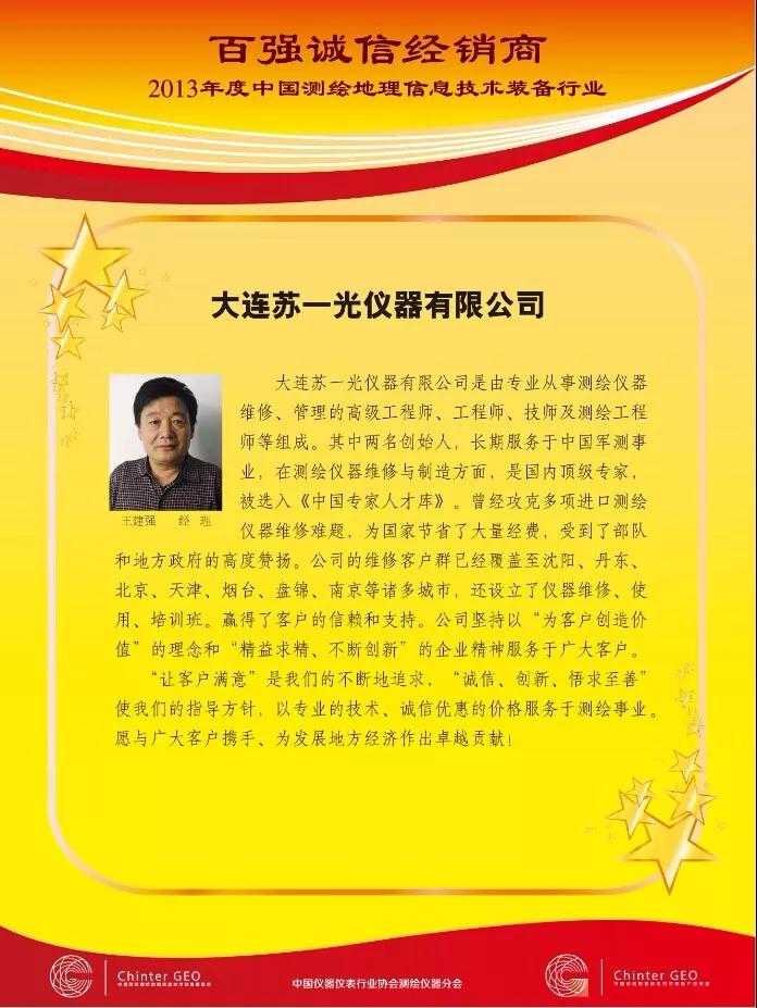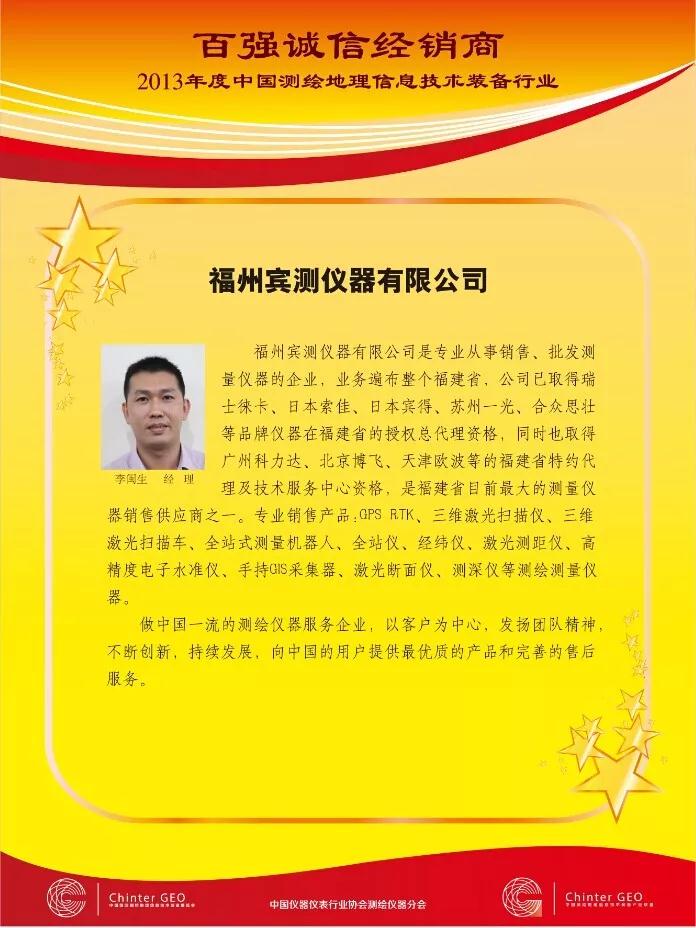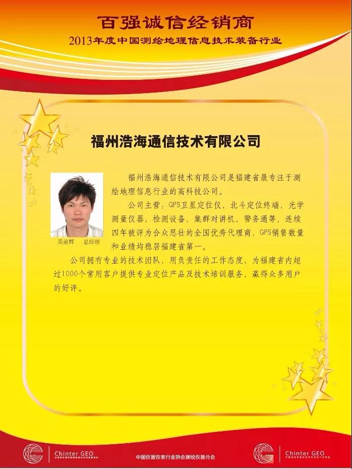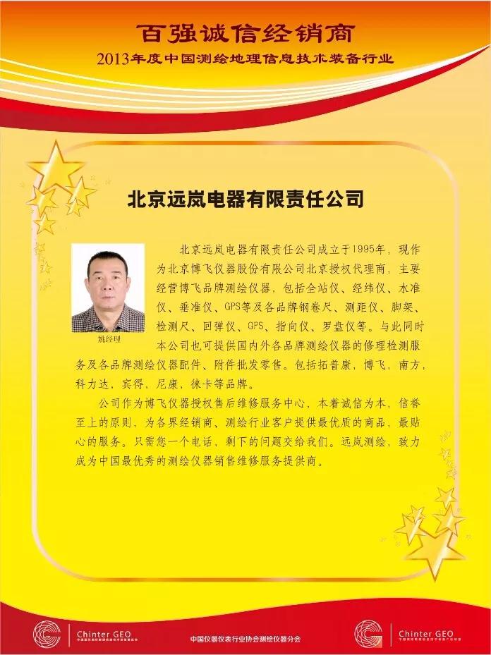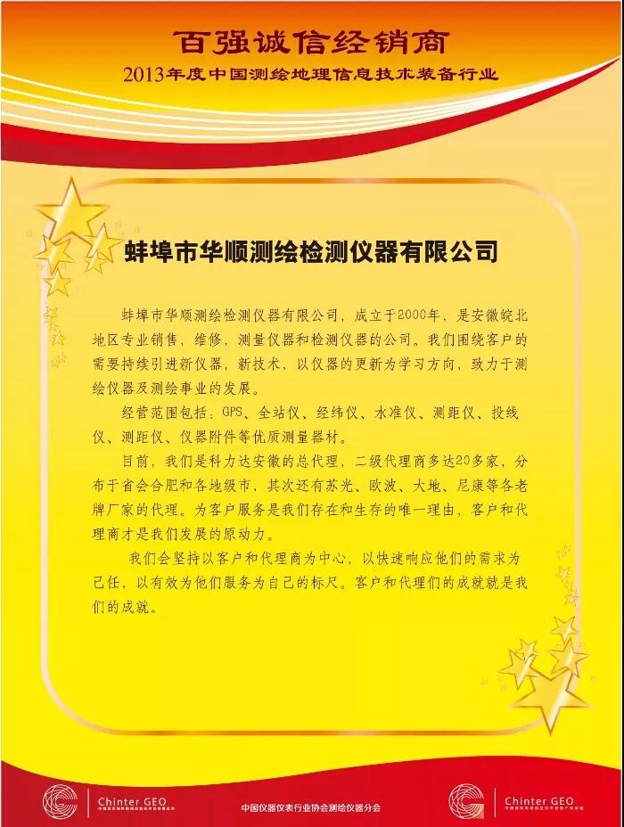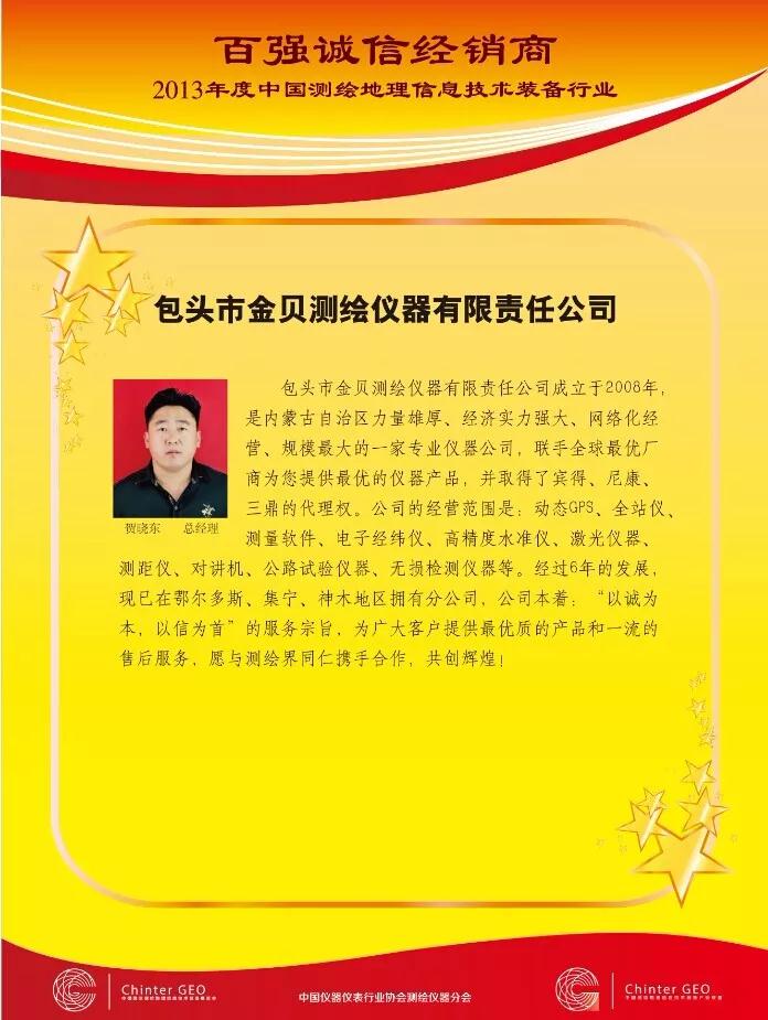 2、展会期间举行授奖牌仪式、由测绘地理信息行业领军企业代表对“百强诚信经销商”进行颁奖。