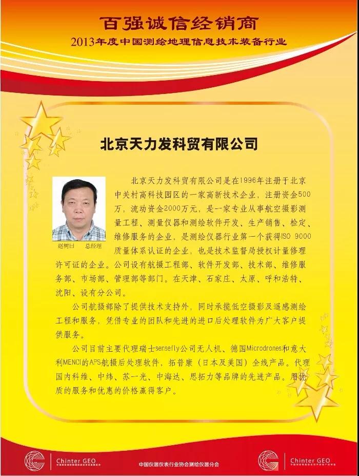 该评比活动从创办初期开始,始终以倡导行业正能量,鼓励企业诚实守信、公平竞争、互相尊重、共同发展,营造行业绿色生态环境为目的。随着活动影响力和号召力的不断扩大,广大生产厂家及业内经销商对“百强诚信经销商”称号更加重视,越来越多的业内经销商都以能获得“百强诚信”的称号为年度最高荣誉。同时,该奖项被多家招、投标公司认可,成为测绘地理硬件产品采购招、投标项目中提分奖项,充分体现行业公信力及自身自律能力。