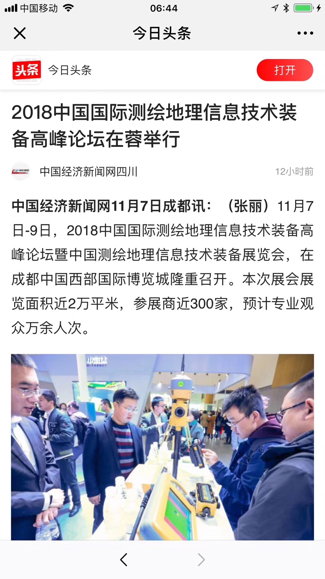 11月7日,2018中国国际测绘地理信息技术装备高峰论坛暨中国测绘地理信息技术装备展览会在西博城隆重开展。本次展会是全国地理信息行业最具影响力的展会,同时也是近年来中西部地区规模最大的地理信息行业展会,展会将从11月7日一直持续到9日。展会位于西博城15-16号馆,展览面积近2万平米,参展商近300家,预计专业观众万余人次。