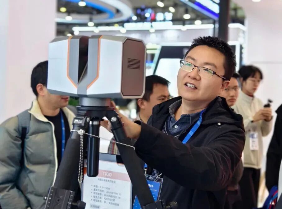 象印科技带来新一代地面三维激光扫描仪T100及全系列高精度激光雷达产品,展示从核心传感器到系统集成的完整解决方案。首次展出的T100造型简洁紧凑,最远测距150m,50m内测量精度达2mm,支持边扫边拼、无缝续航,适配数字化工厂、BIM建模等高精度测量场景。