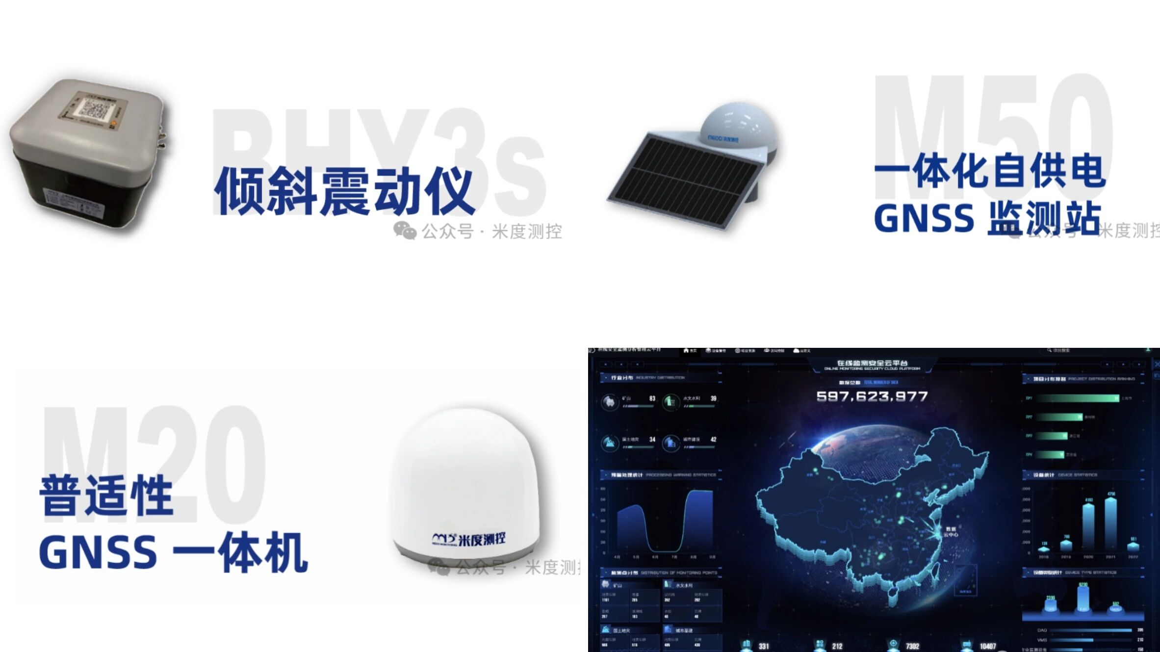 米度测控以北斗卫星导航技术为核心,融合物联网、大数据、数字孪生等前沿技术参展,展出核心产品矩阵:硬件端含新一代普适型GNSS接收机M20、超低功耗一体化自供电GNSS监测站M50、低功耗一体式物联网倾角传感器BHY3S;软件端推出MD-NET安全监测与预警分析云平台、MD-IoT米度物联网云平台。